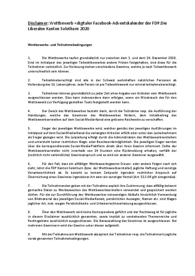 Vom 01.12.2020 bis am 24.12.2020 organisieren wir einen Adventskalender auf Facebook.